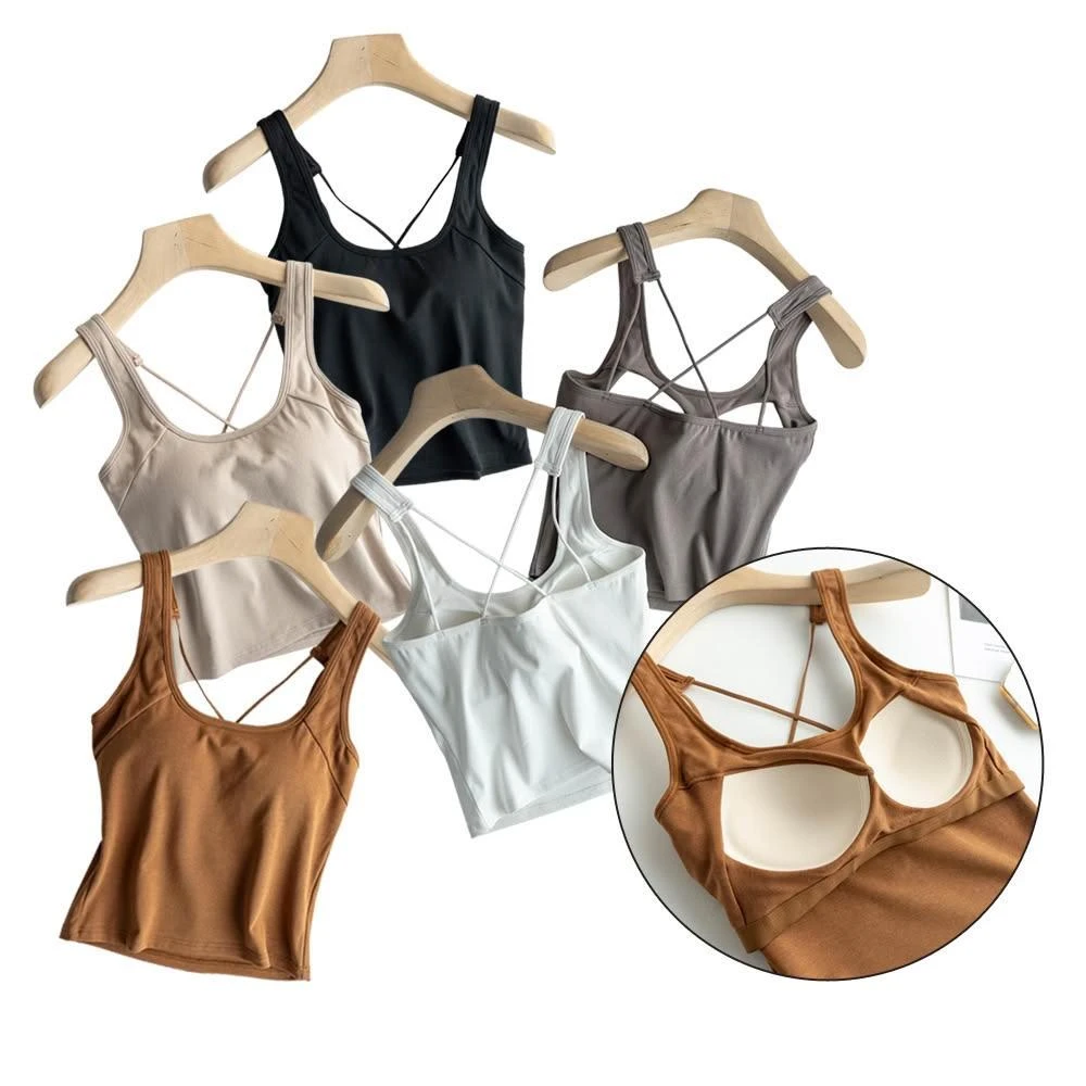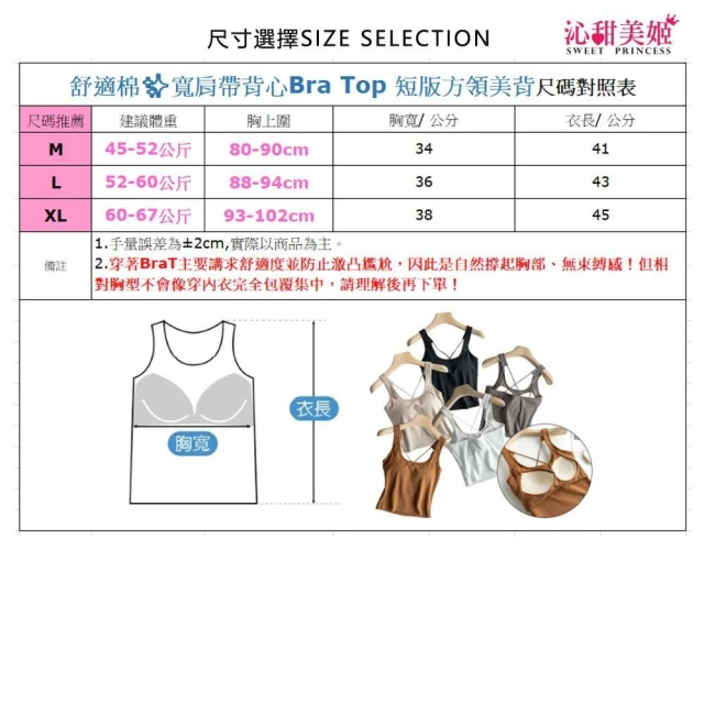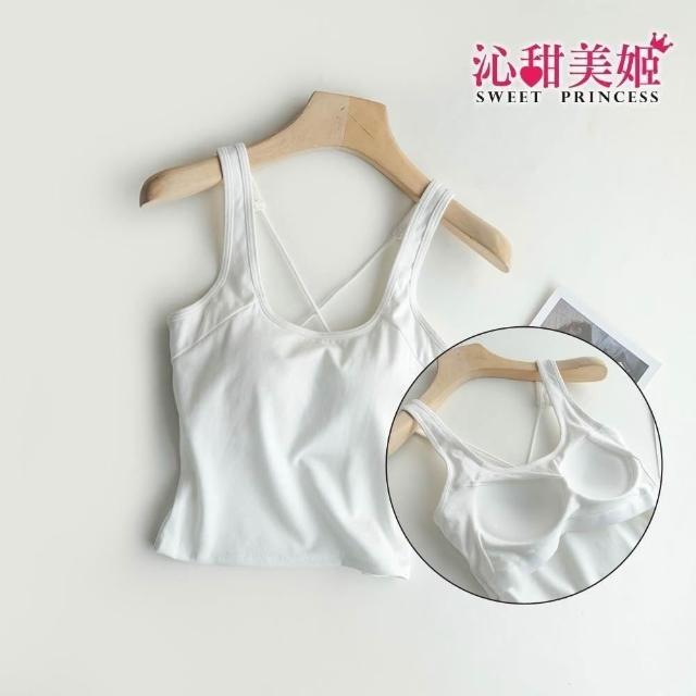 沁甜美姬棉M-XL短版方領美背帶胸墊Bra Top寬肩帶背心(免穿內衣 韓版小可愛 休閒服 運動服 家居服)