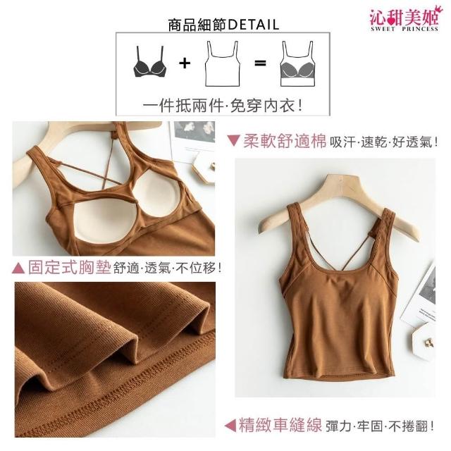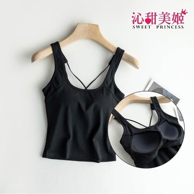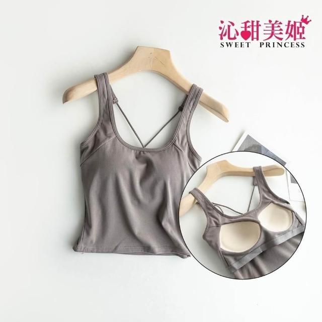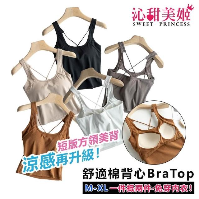 沁甜美姬棉M-XL短版方領美背帶胸墊Bra Top寬肩帶背心(免穿內衣 韓版小可愛 休閒服 運動服 家居服)