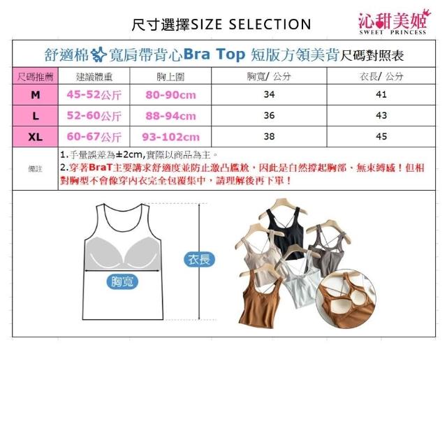 沁甜美姬棉M-XL短版方領美背帶胸墊Bra Top寬肩帶背心(免穿內衣 韓版小可愛 休閒服 運動服 家居服)
