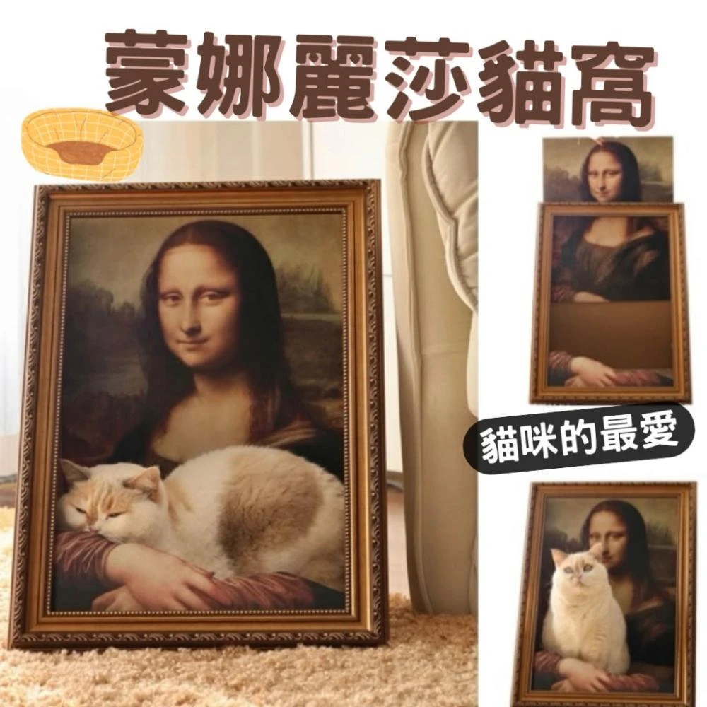 蒙娜麗莎貓窩 貓抓板 4D立体貓窩 寵物窩 立體油畫貓抓板 4D油畫相框一體貓窩名畫 貓爪板創意寵物窩貓玩具 HP57