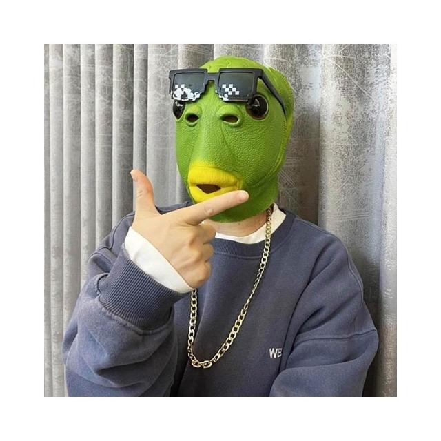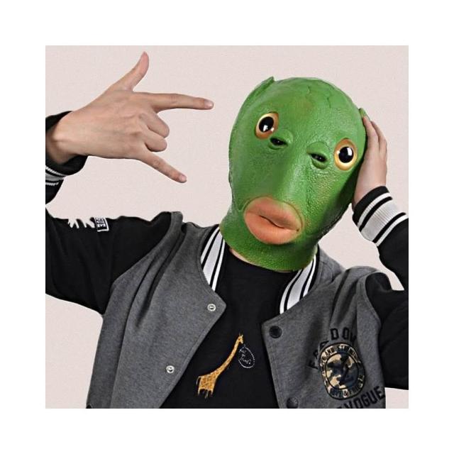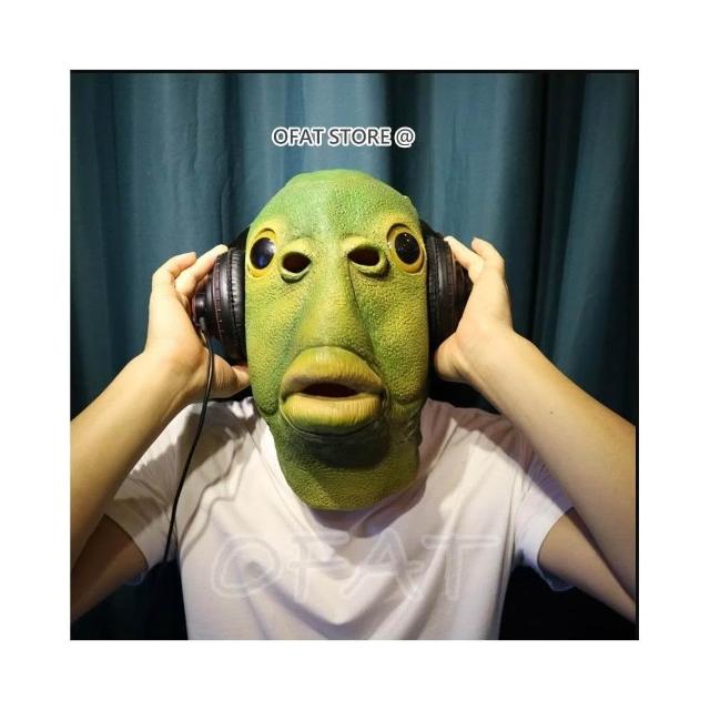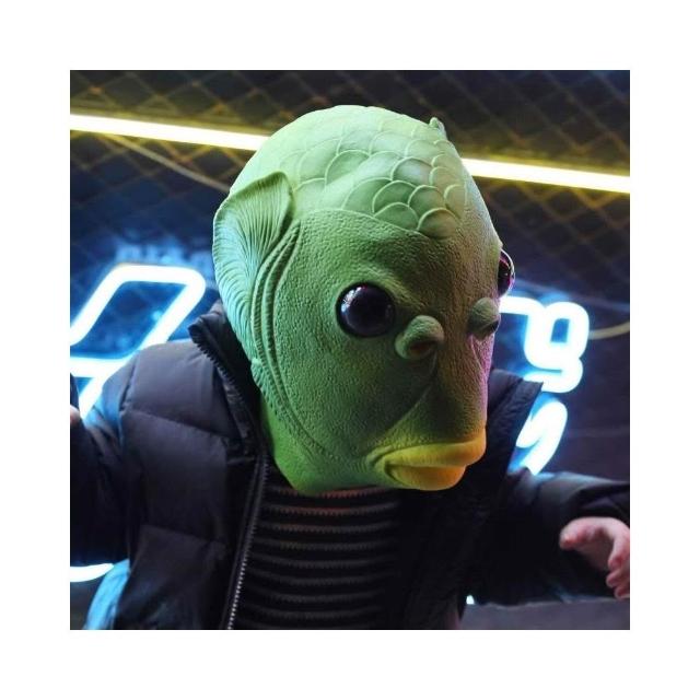 綠人魚面具 動物頭套 抖音同款 整蠱 動物魚頭 聖誕節 卡通搞笑表演道 魚人頭套 HT79