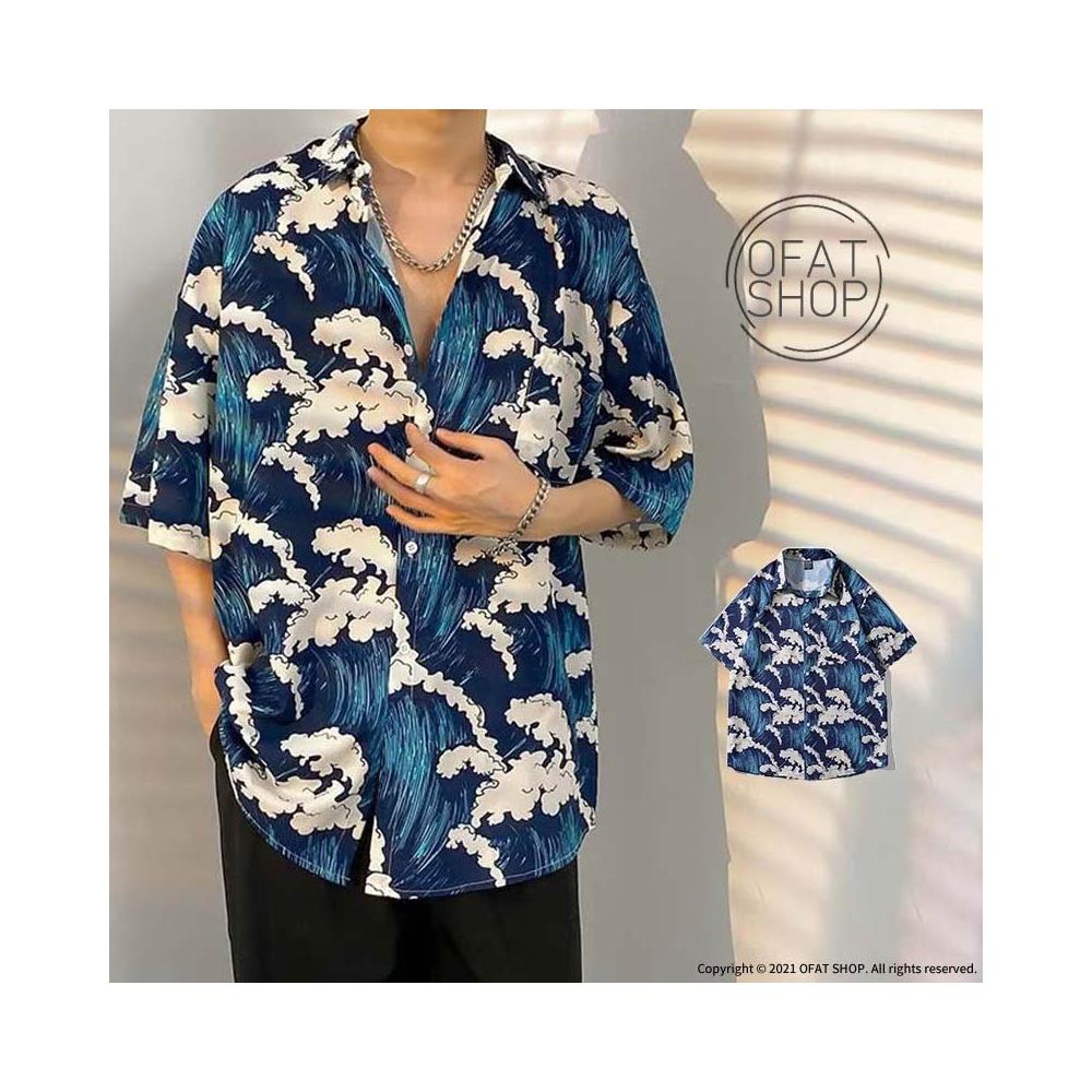海浪花 花襯衫 海灘襯衫 Ofat🇰🇷 外搭襯衫 短袖襯衫 花襯衫女 花襯衫男 情侶襯衫 MB23