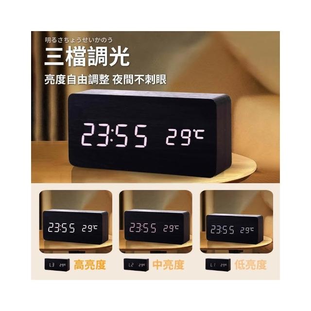 聲控顯示⏰當天 木頭時鐘 木紋時鐘 木質鬧鐘 木質時鐘 木紋鬧鐘 鬧鐘 時鐘 雙供電系統 USB充電 HE31