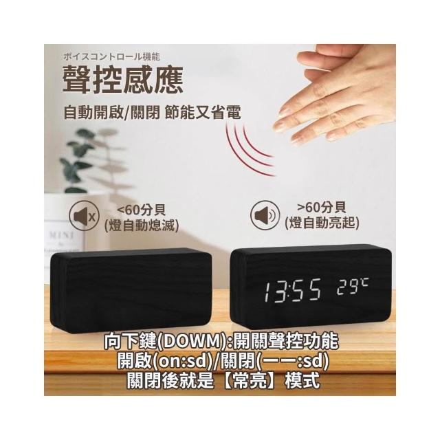 聲控顯示⏰當天 木頭時鐘 木紋時鐘 木質鬧鐘 木質時鐘 木紋鬧鐘 鬧鐘 時鐘 雙供電系統 USB充電 HE31