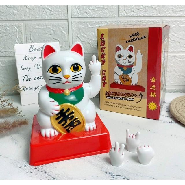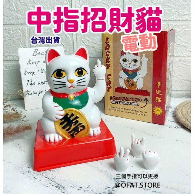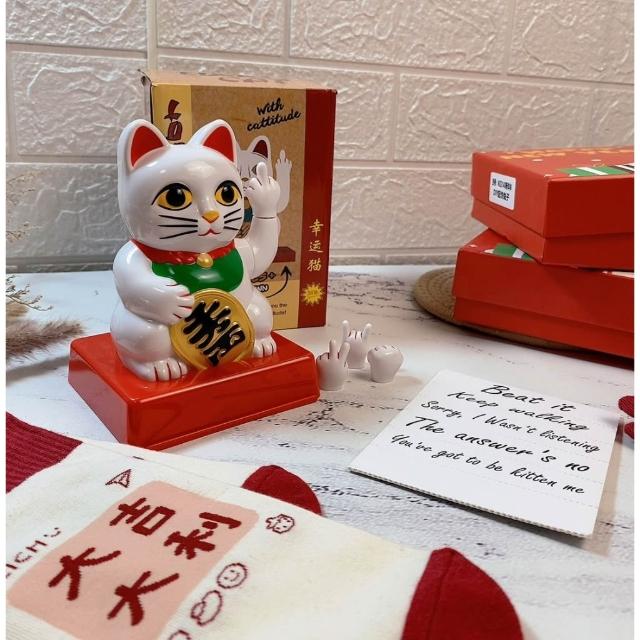 開業禮物 奧客掰掰 最新款中指招財貓 四手勢可替換 電動厭世招財貓 招財貓 開幕禮 交換禮物 HW55