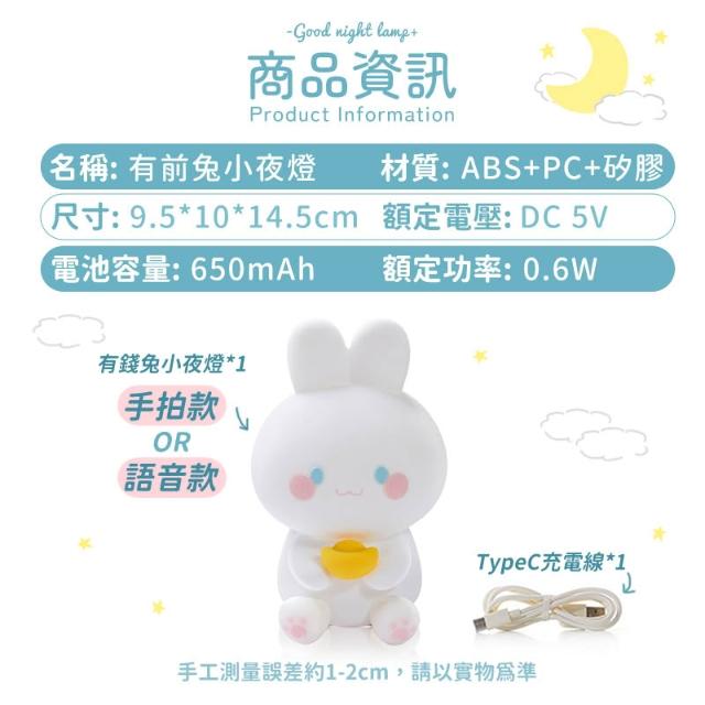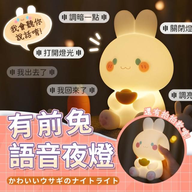語音控制/可定時 超可愛有前兔小夜燈 兔子夜燈 創意小兔子語音夜燈 生日禮物 兒童禮物 開幕禮 床頭燈 HW29