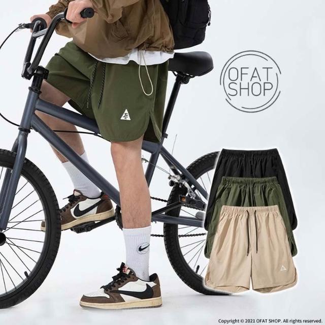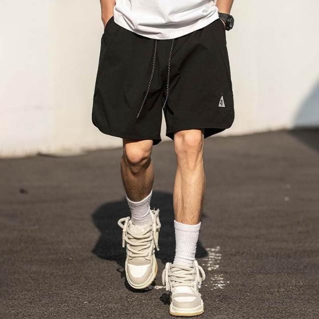 刺繡三角LOGO休閒五分褲 休閒五分褲 機能褲 運動短褲 海灘褲 膝上短褲 休閒短褲 涼感 速乾【MM48】