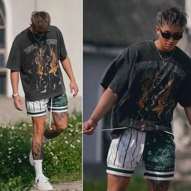 美式復古四分短褲|夏季運動印花球褲|雙層網眼透氣|球褲|街頭潮流必備|健身籃球戶外穿搭推薦【A39】
