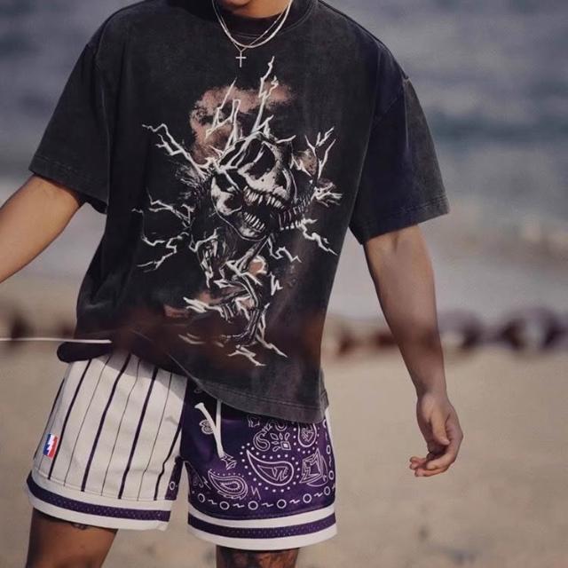 美式復古四分短褲|夏季運動印花球褲|雙層網眼透氣|球褲|街頭潮流必備|健身籃球戶外穿搭推薦【A39】