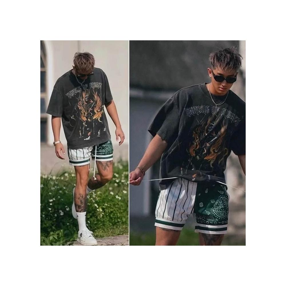 美式復古四分短褲|夏季運動印花球褲|雙層網眼透氣|球褲|街頭潮流必備|健身籃球戶外穿搭推薦【A39】