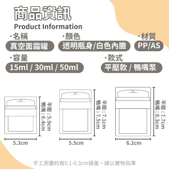 真空乳霜罐 乳液瓶 膏霜瓶 分裝瓶 旅行分裝瓶 面霜罐 面霜瓶 真空瓶 平壓款 鴨嘴泵 單手按壓 【HF253】
