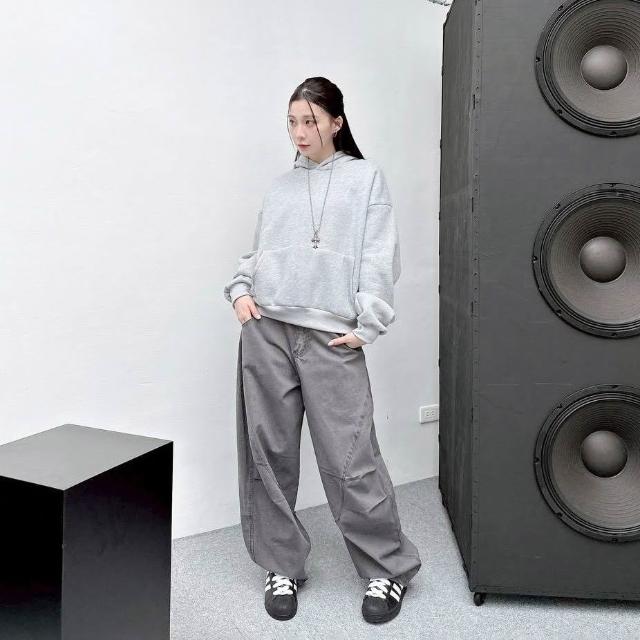 寬短版厚磅帽T 素色刷毛連帽上衣 BOXY FIT 情侶帽T 灰色帽T 黑色帽T 秋冬長袖 街頭穿搭必備【MX87】