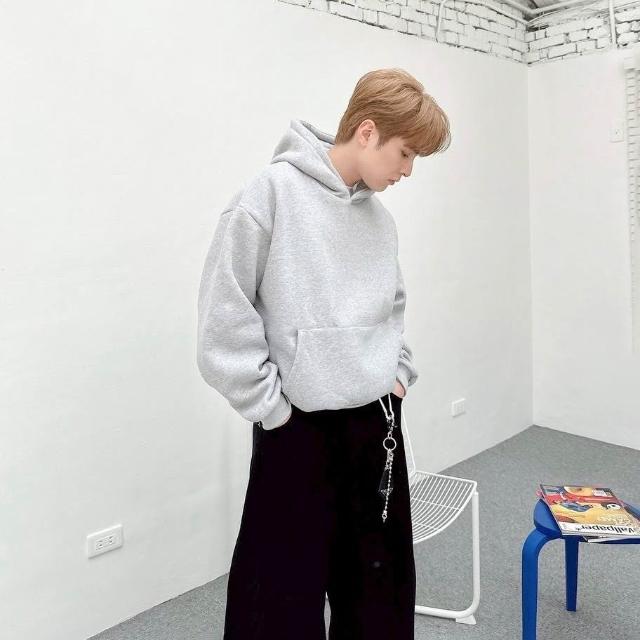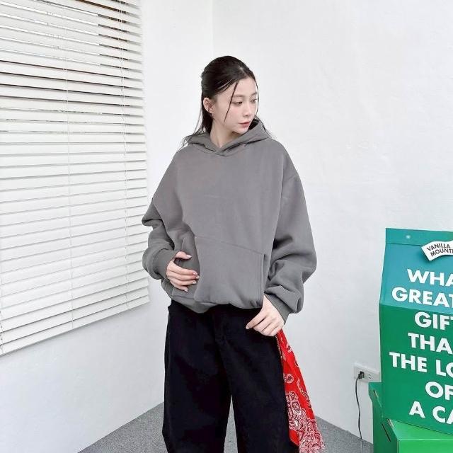 寬短版厚磅帽T 素色刷毛連帽上衣 BOXY FIT 情侶帽T 灰色帽T 黑色帽T 秋冬長袖 街頭穿搭必備【MX87】