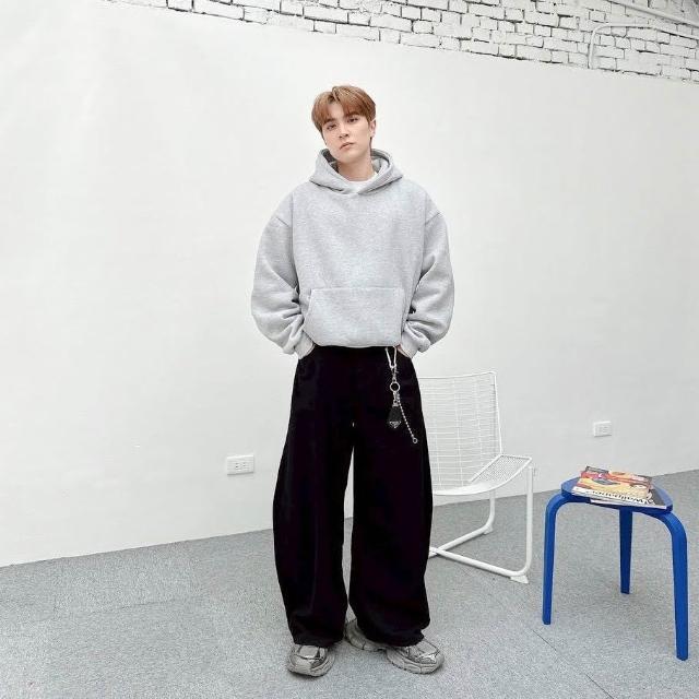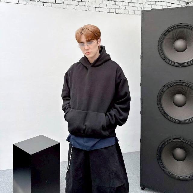 寬短版厚磅帽T 素色刷毛連帽上衣 BOXY FIT 情侶帽T 灰色帽T 黑色帽T 秋冬長袖 街頭穿搭必備【MX87】