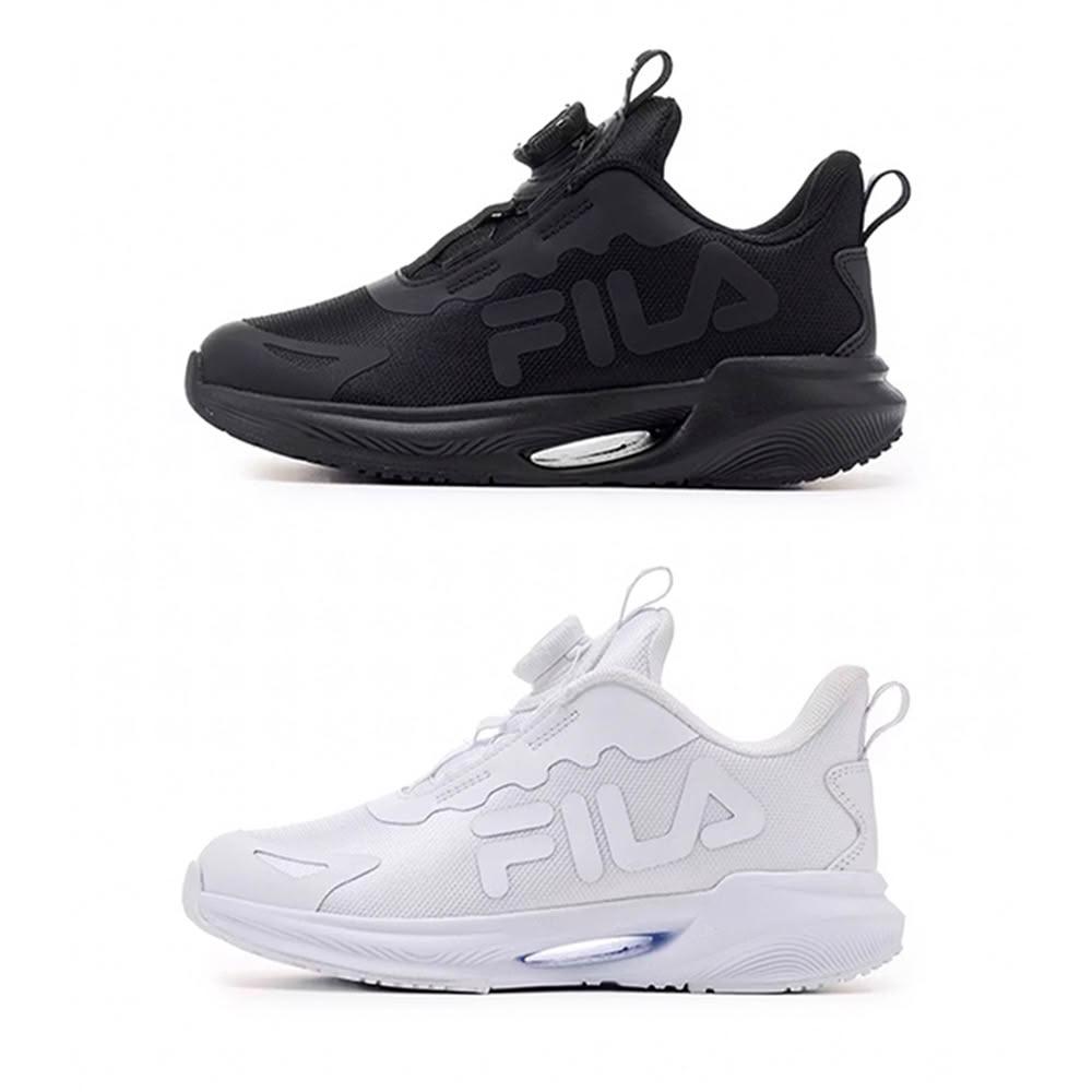 FILA旋鈕扣免綁帶運動童鞋 全白兒童運動鞋 黑白色跑步鞋 兒童機能鞋 足弓鞋 女童鞋 男童鞋 W7625 奧森