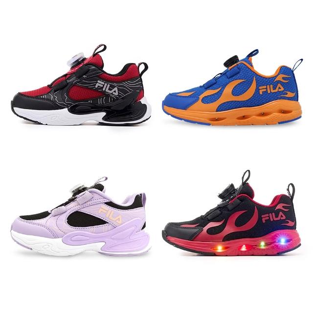 FILA旋鈕扣免綁帶運動童鞋 兒童電燈鞋 兒童運動鞋 兒童機能鞋 康特杯 閃燈 旋鈕 慢跑鞋 跑步鞋 女男童鞋 W7605 奧森