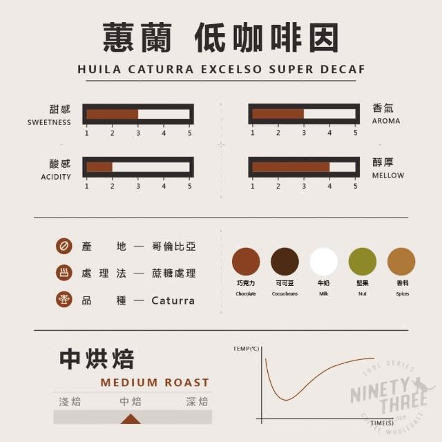 93 Coffee 哥倫比亞 蕙蘭 低咖啡因 蔗糖處理法 中焙 咖啡豆(200g 精品咖啡豆)