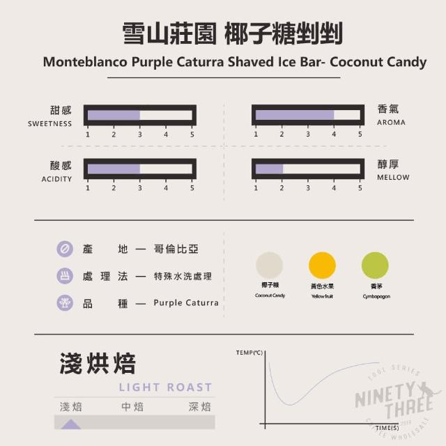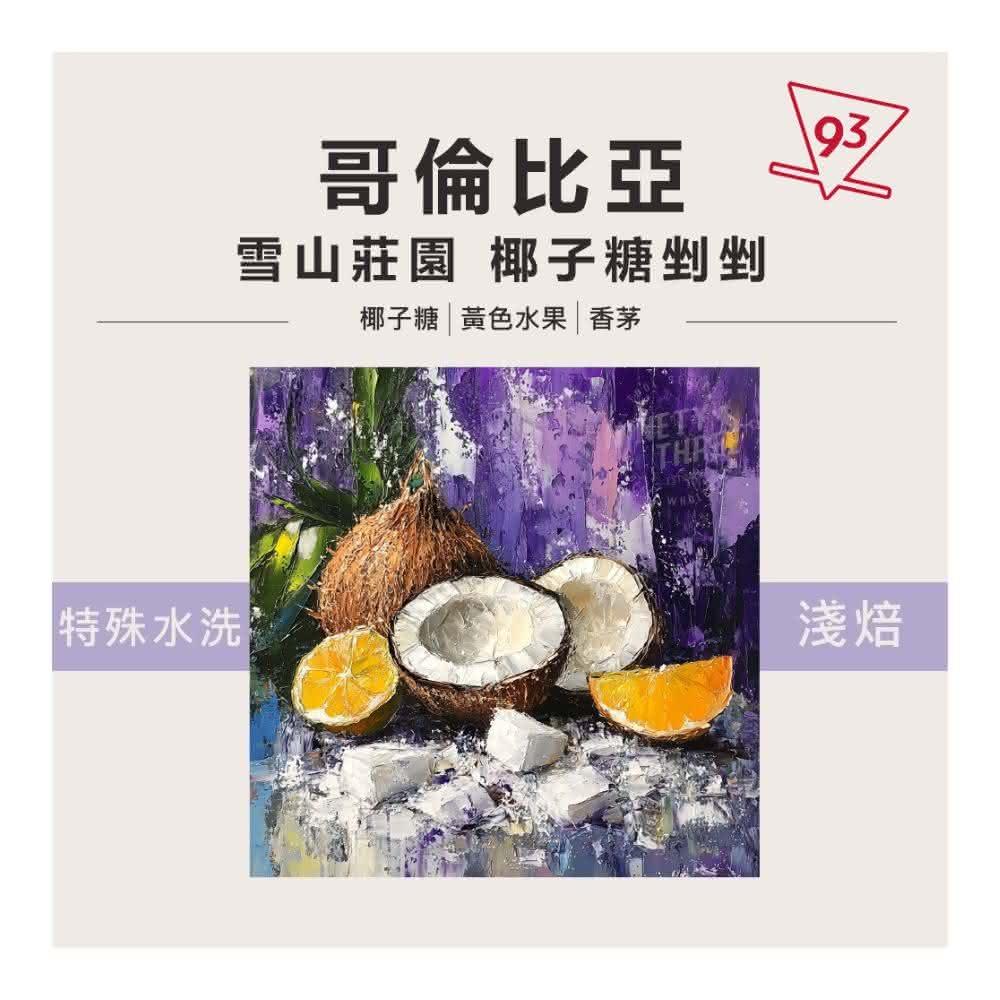 93 Coffee 哥倫比亞 雪山莊園 紫卡杜拉 剉冰吧 椰子糖剉剉 特殊水洗 咖啡豆