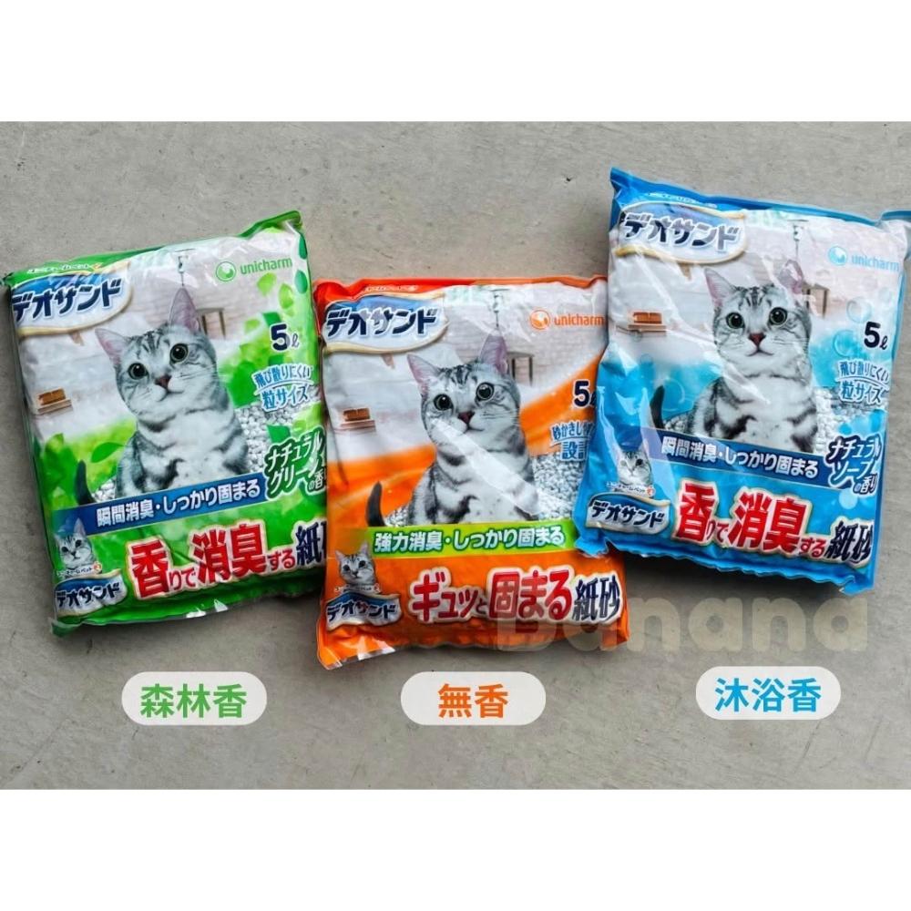 Unicharm Pet 消臭大師嬌聯 瞬間消臭紙砂5L (沐浴香/森林香/無香/強力結團紙砂)