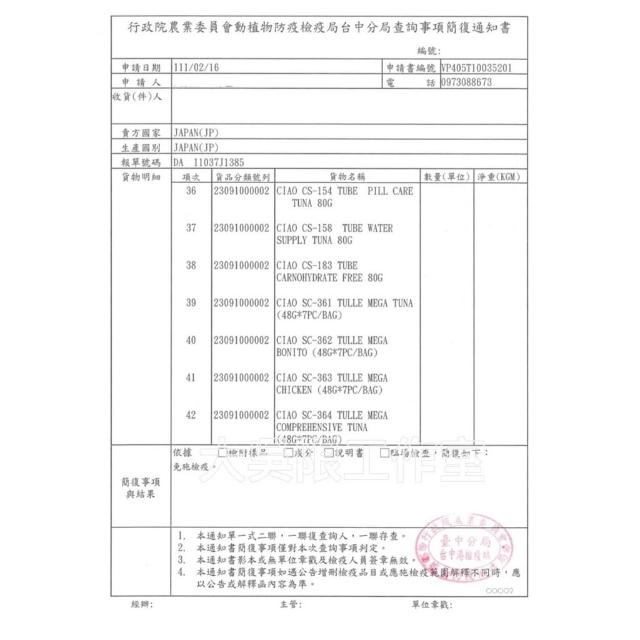 - 下單前注意事項: 1、食品類因保存問題,僅提供商品瑕疵之退換貨,若寵物不喜歡吃,則不在退換貨範圍內。 2、產品為手工測量,約有1-3cm的測量誤差屬正常現象,敬請理解後再購買! 3、圖片中商品的顏色,雖已儘量呈現原貌,但由於拍照、電腦螢幕設定的不同等因素,可能與實物略有出入。因此圖片僅供參考,仍以實物顏色為準 4、出貨前均會檢查有無瑕疵,罐頭會確定無凹罐且妥善包裝後才寄出,但包裹一路顛簸送到您的手中,難免會出現受損情況 5、收到包裹請開箱錄影,保障您我權益,如商品有短少需提供開箱錄影佐證,敬請配合謝謝。
