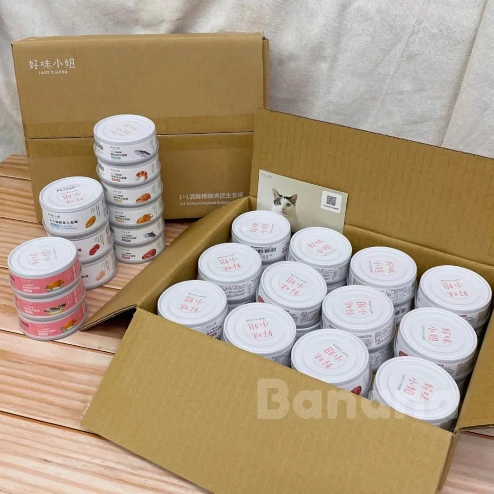 Lady Flavor 好味小姐1+1滴雞精貓肉泥主食罐80g、1+1原肉塊鮮食主食罐81g,6入/24入組 (好味小姐主食罐)
