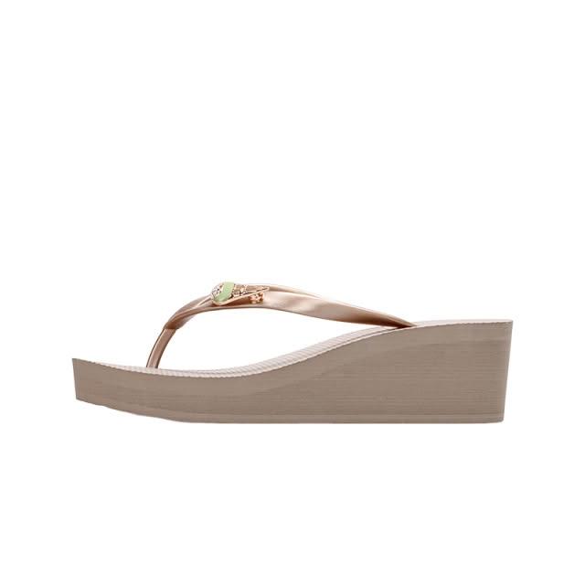 ROCKY BEAR 洛克熊夏季經典坡跟人字拖 5.5cm楔型女鞋 防水簡約拖鞋W36-金色冰淇淋