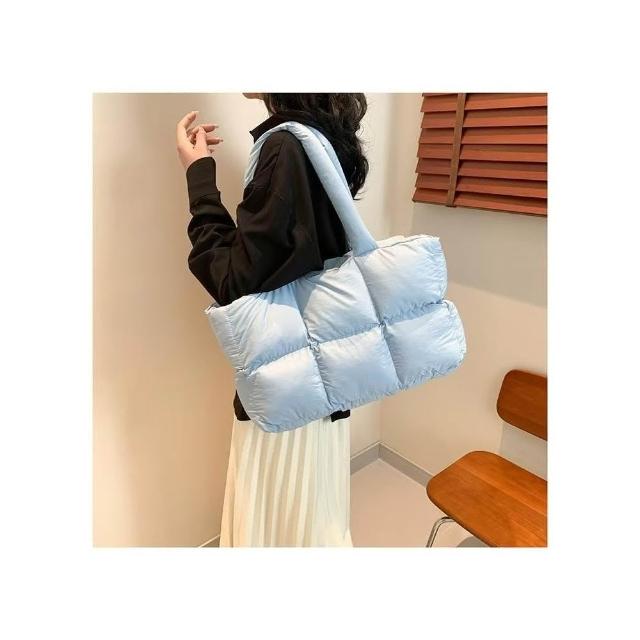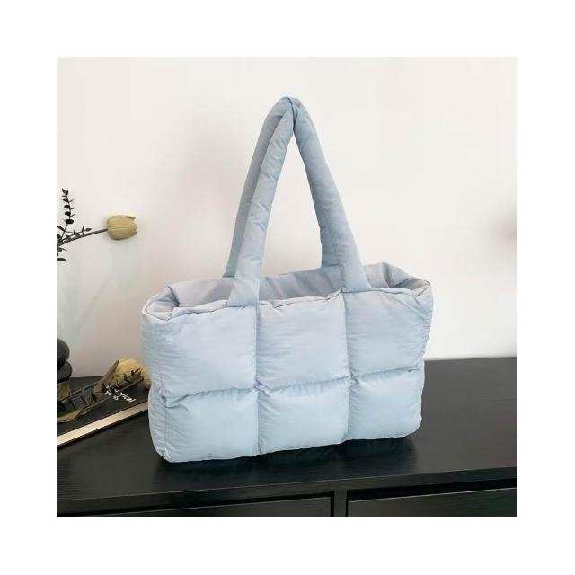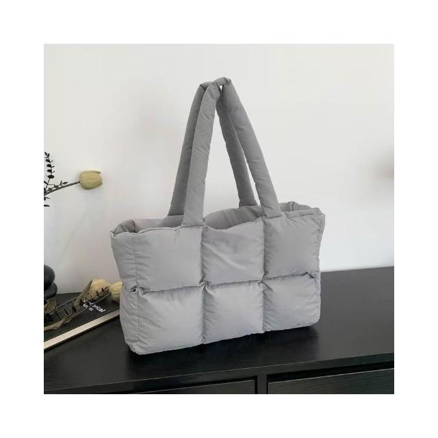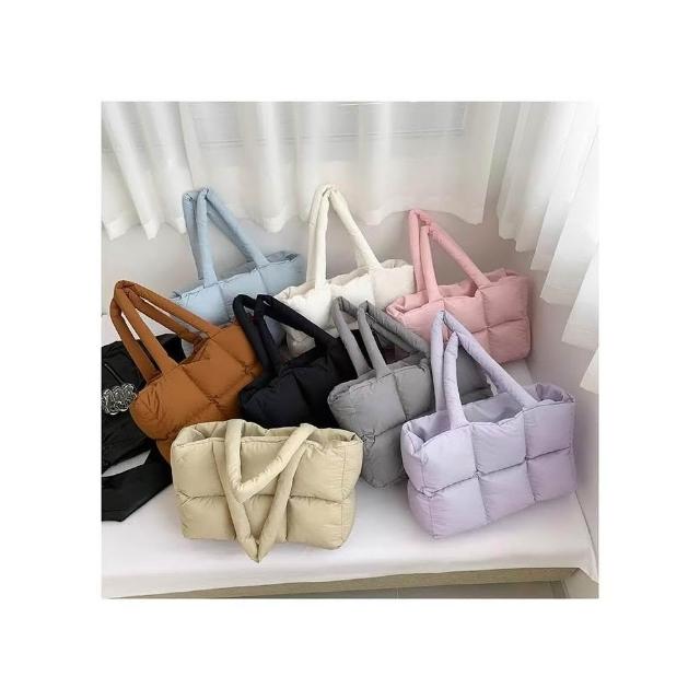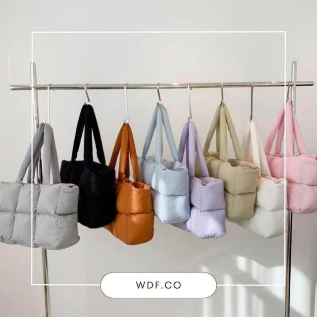 WDF.CO現貨│2024新款韓國吐司托特包│黑白灰卡紫藍粉7色編織方塊包│單肩空氣包 │有拉鍊|大容量|通勤包|雲朵包