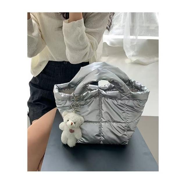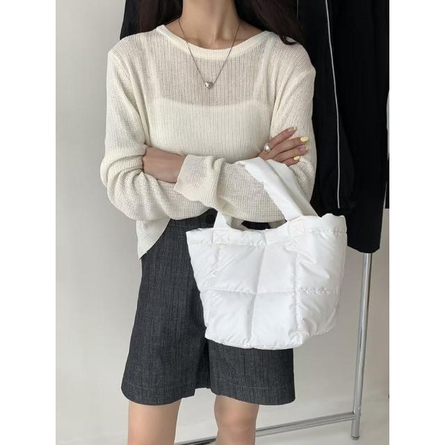 WDF.CO現貨|2024韓國4色空氣托特包│黑白銀咖|防潑水|方格泡泡|輕量包|有磁鈕|手提包|大容量|羽絨包|通勤包