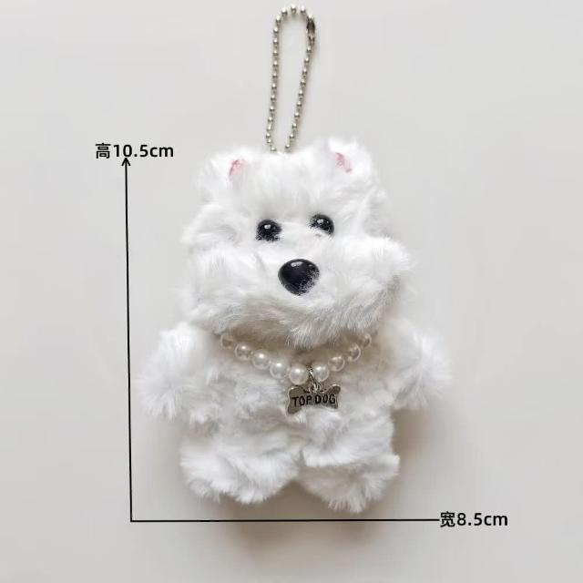 WDF.CO現貨|2025最新韓國西高地小狗吊飾│珍珠小狗掛件│附珠鍊│咖白2色毛絨狗│汽車鑰匙扣│包包吊飾|鑰匙圈配件