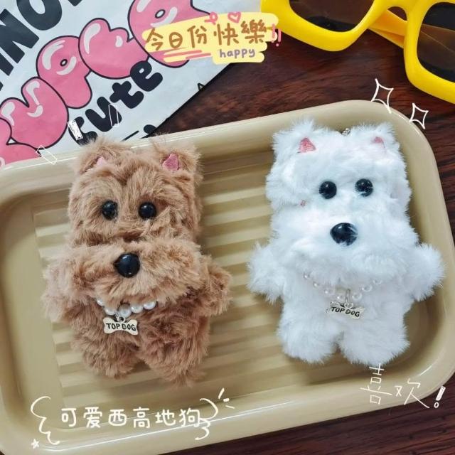 WDF.CO現貨|2025最新韓國西高地小狗吊飾│珍珠小狗掛件│附珠鍊│咖白2色毛絨狗│汽車鑰匙扣│包包吊飾|鑰匙圈配件