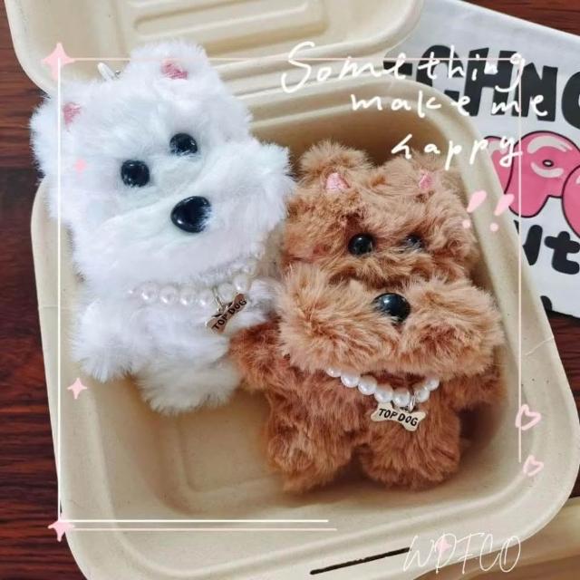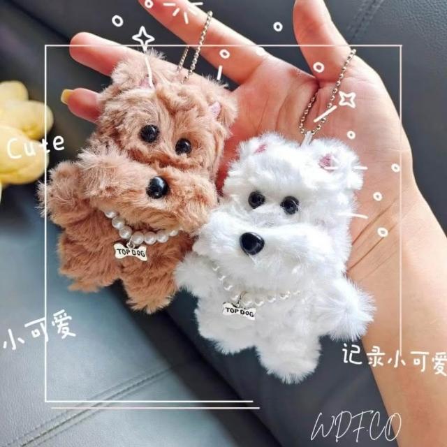 WDF.CO現貨|2025最新韓國西高地小狗吊飾│珍珠小狗掛件│附珠鍊│咖白2色毛絨狗│汽車鑰匙扣│包包吊飾|鑰匙圈配件