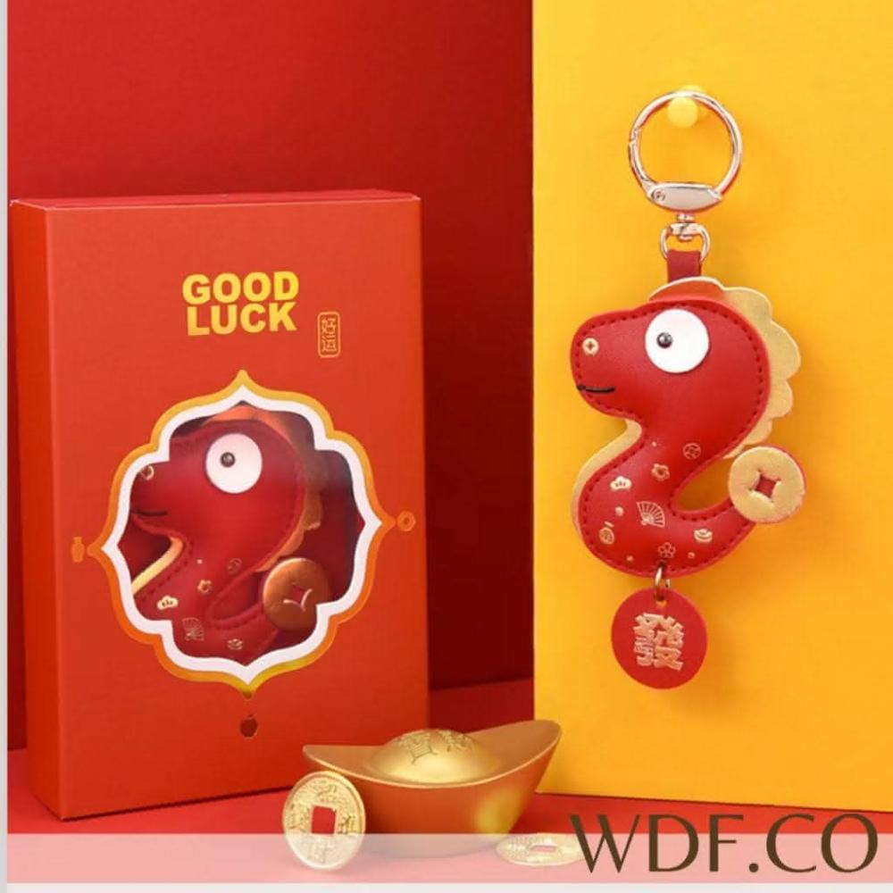 WDF.CO現貨|2025 蛇年吊飾禮盒|紅色招財蛇汽車鑰匙扣|包包吊飾|新年禮物|發財皮革掛件|交換禮物|禮品