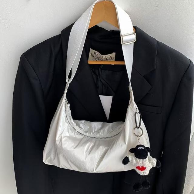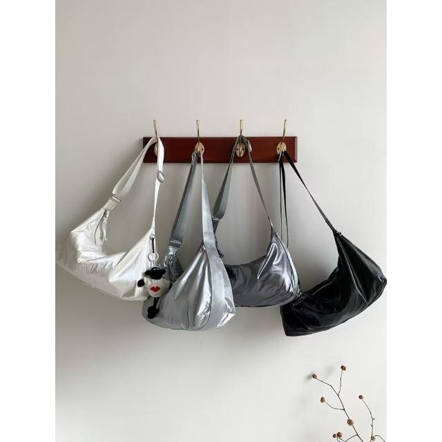 WDF.CO現貨|2024韓國秋冬太空包|黑白銀灰4色小方包|斜背包|輕量|金屬感|單肩包|大容量|旅行包|外出包|