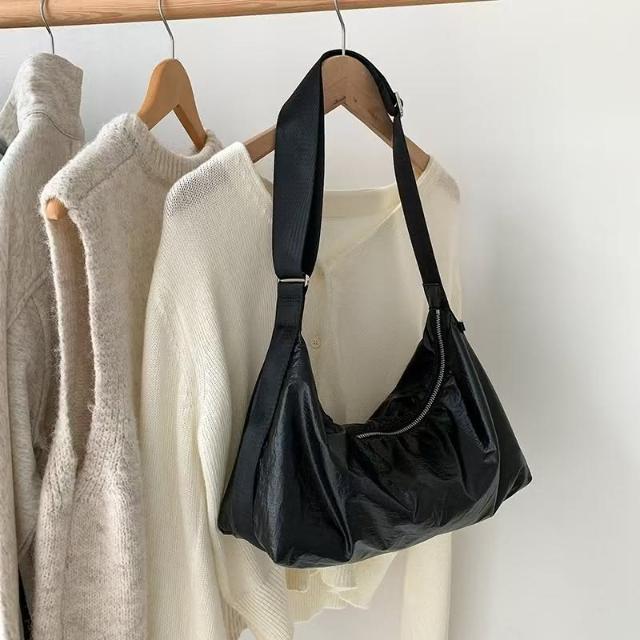 WDF.CO現貨|2024韓國秋冬太空包|黑白銀灰4色小方包|斜背包|輕量|金屬感|單肩包|大容量|旅行包|外出包|