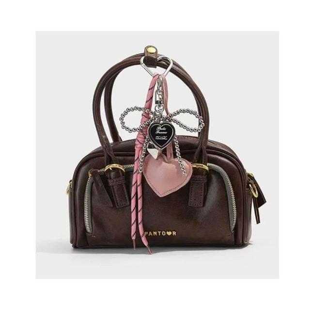 WDF.CO現貨|2025韓國miu風新款皮革愛心吊飾│黑紅粉3色編織吊繩│珠鍊蝴蝶結│包包掛件│ins小物│包包吊飾│