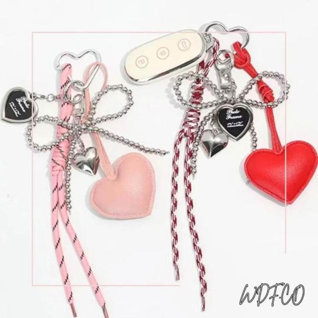WDF.CO現貨|2025韓國miu風新款皮革愛心吊飾│黑紅粉3色編織吊繩│珠鍊蝴蝶結│包包掛件│ins小物│包包吊飾│