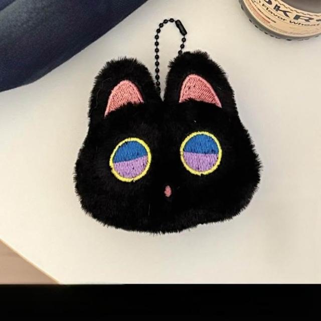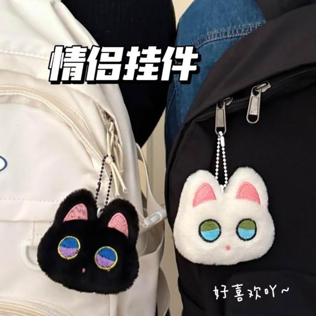 WDF.CO現貨|2025韓國新款大眼睛黑貓吊飾|黑白紅白圍巾│黃紅鈴鐺│大頭貓咪│包包吊飾|附珠鍊|鑰匙圈配飾|裝飾擺