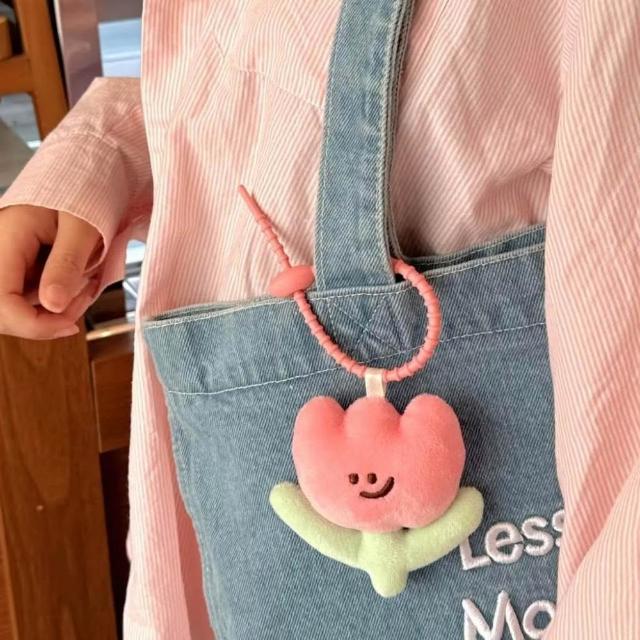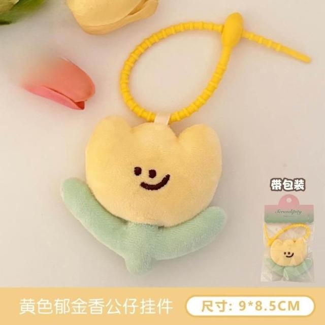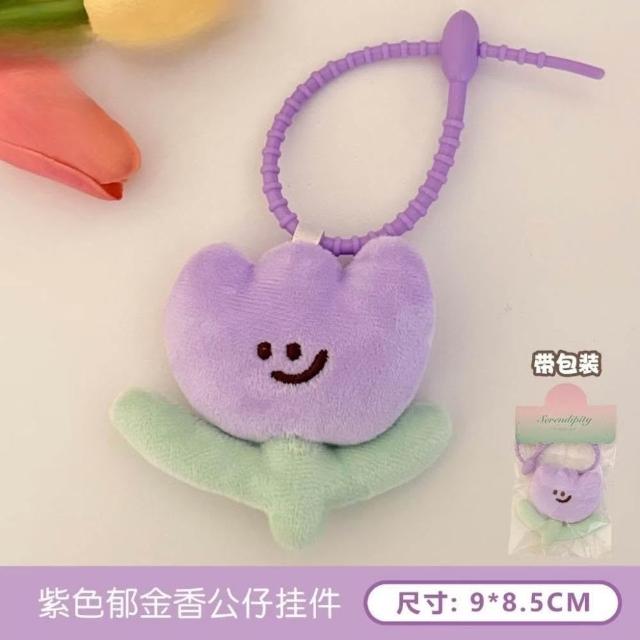 WDF.CO現貨|2025韓國東大門可愛風8.5CM鬱金香掛件│黃粉紫3色花朵絨布掛件│包包吊飾|珪膠束帶|