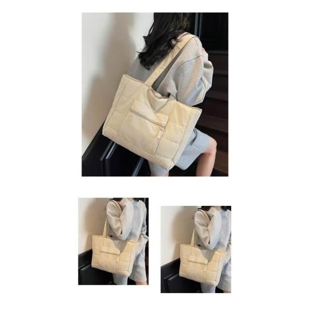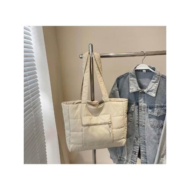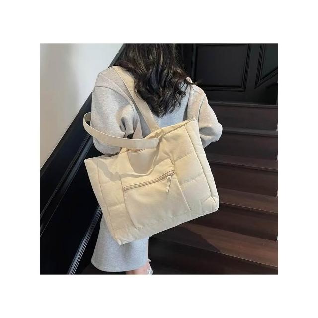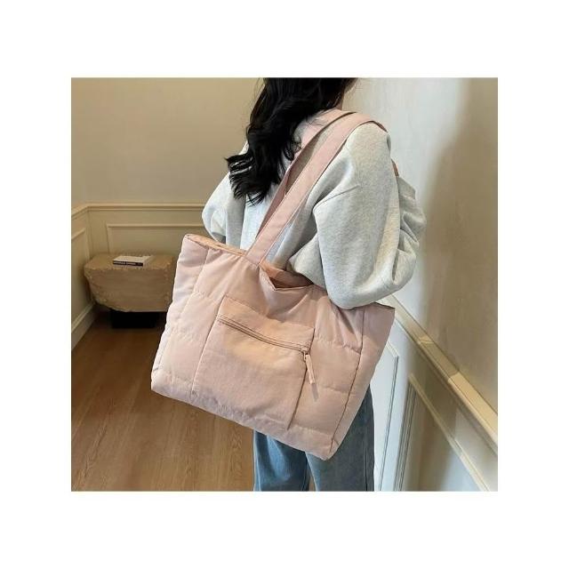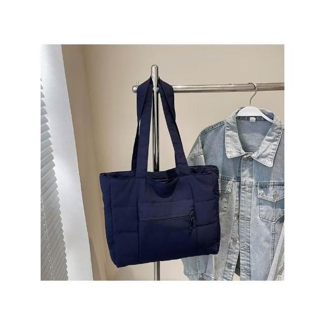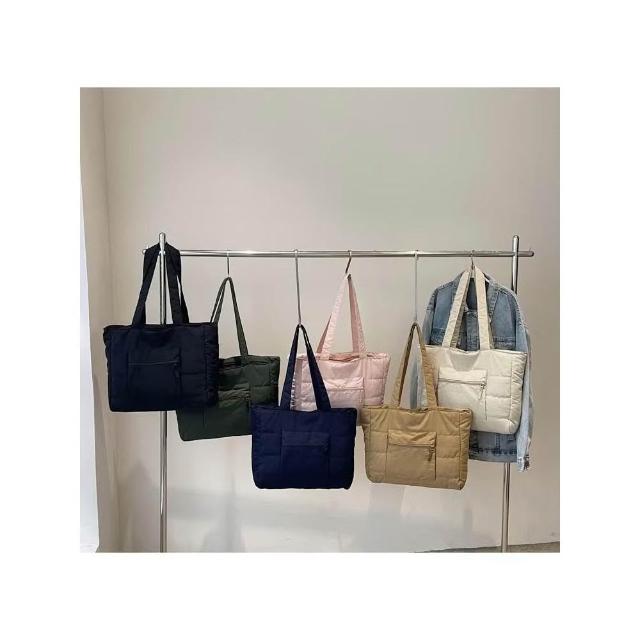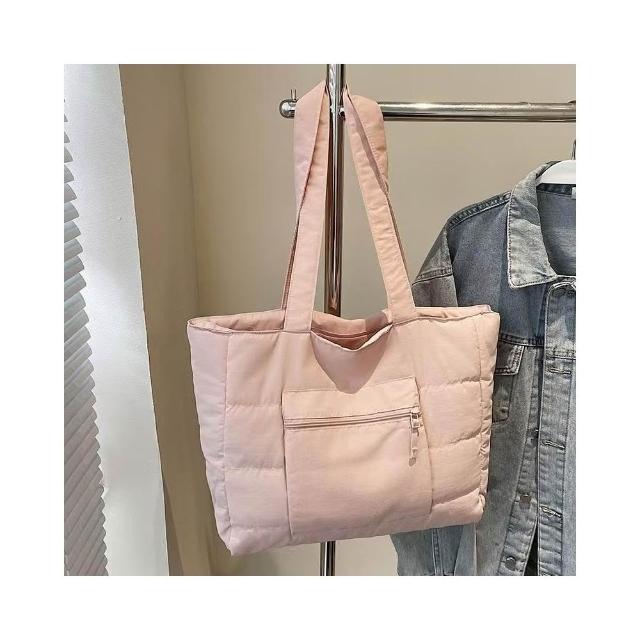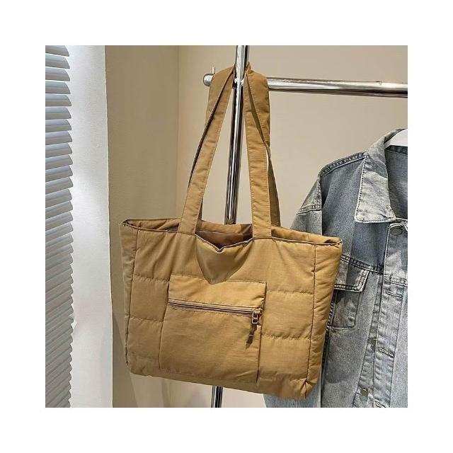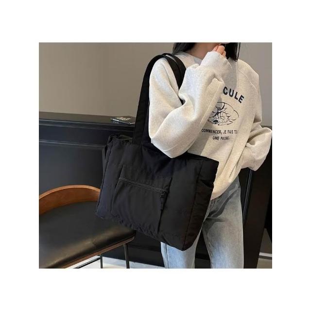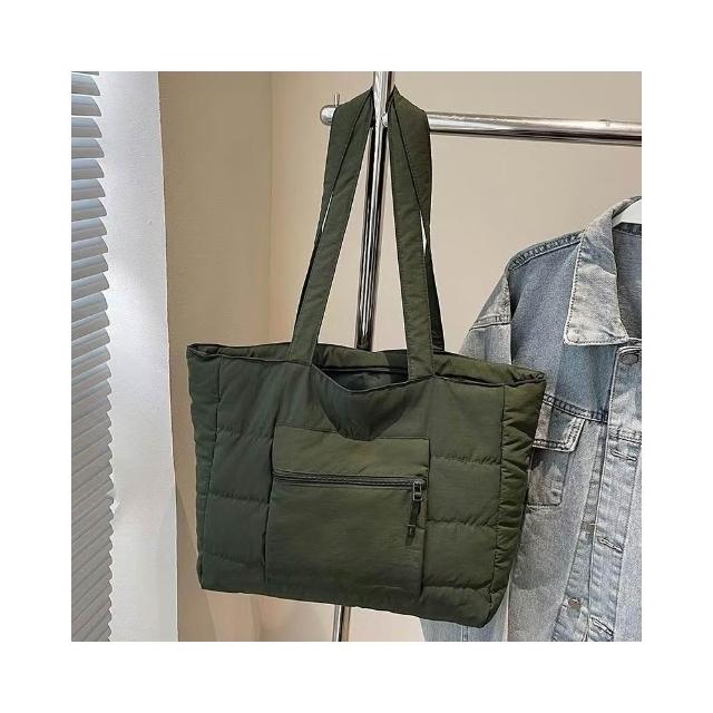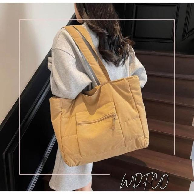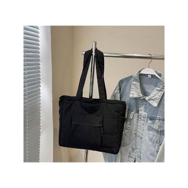 WDF.CO現貨│2025新款韓國軟糯單肩托特包│黑藍綠卡白粉6色前側口袋 │有拉鍊 │空氣包|大容量|通勤包|外出包