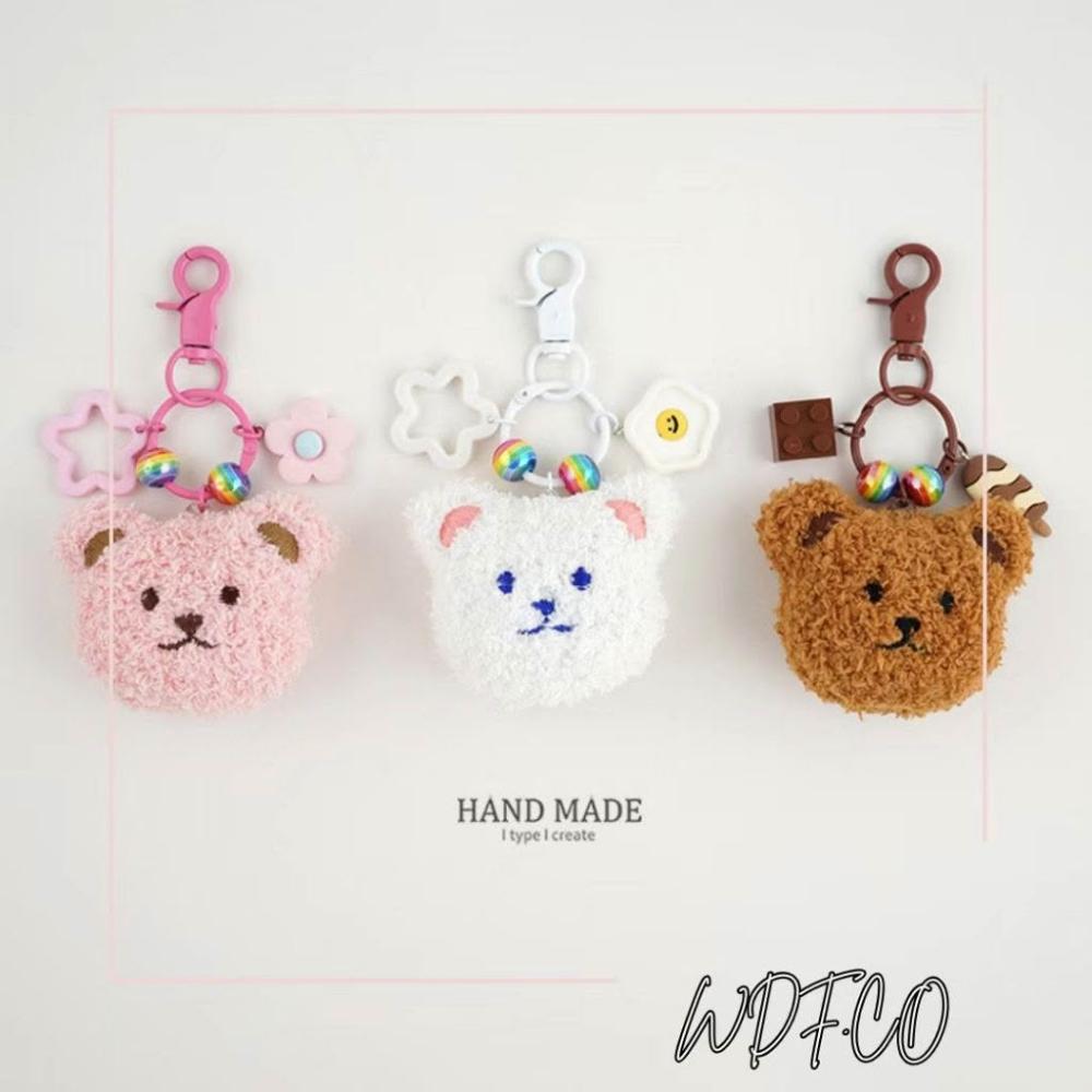 WDF.CO現貨|2025韓國新款可愛泰迪熊頭吊飾│粉白咖棕4色圓圈小熊掛扣│星星積木│包包掛件│ins小物│包包吊飾│