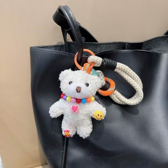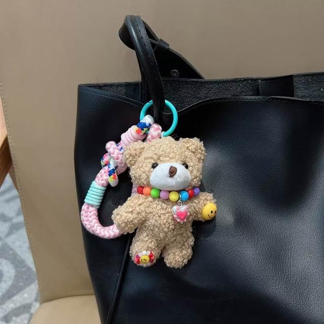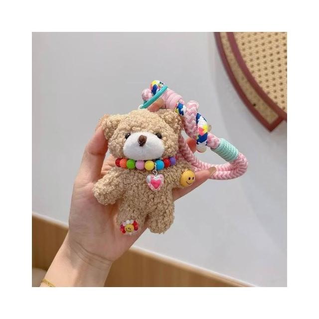 WDF.CO現貨|2025最新韓國泰迪小熊毛絨吊飾│白淺咖3色彩虹項鍊珍珠熊│背包掛件│鑰匙圈扣│包包吊飾│ins小物