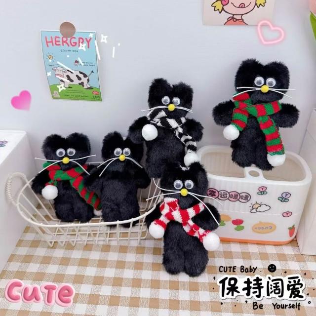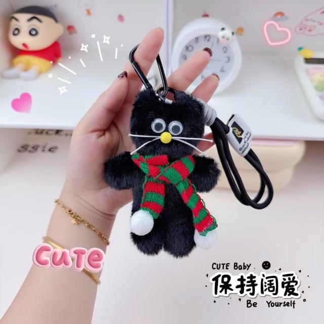 WDF.CO現貨|2025最新韓國新款圍巾小貓咪吊飾│黑白紅綠圍巾黑貓│附繩扣│背包掛件│鑰匙圈扣│包包吊飾│ins小物
