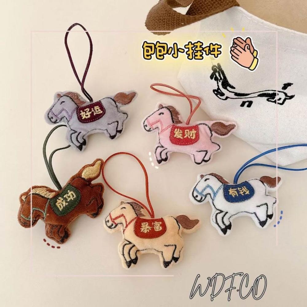 WDF.CO現貨│2025新款毛絨刺繡小馬掛件吊飾│黃白粉灰棕5色馬玩偶│馬上爆富│有錢│好運│成功│書包掛件│鑰匙圈