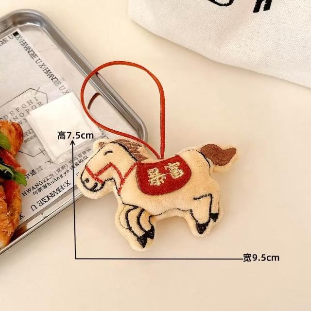 WDF.CO現貨│2025新款毛絨刺繡小馬掛件吊飾│黃白粉灰棕5色馬玩偶│馬上爆富│有錢│好運│成功│書包掛件│鑰匙圈