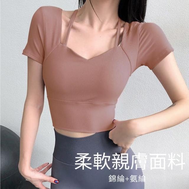 Muses短袖瑜珈服 運動瑜伽服 健身上衣女 瑜珈服裝 帶胸墊設計 親膚透氣 羅紋修身 顯瘦效果40-80kg