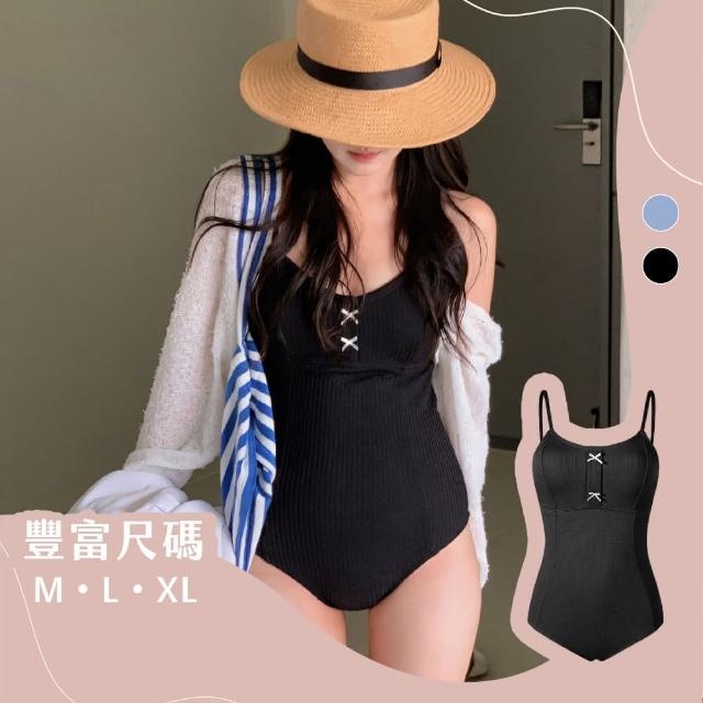 Muses青少女泳裝 連身式泳衣 小胸部泳衣 泳衣連身裙 細肩帶設計 蝴蝶結點綴 收腰連體 華夫格壓紋45-64kg