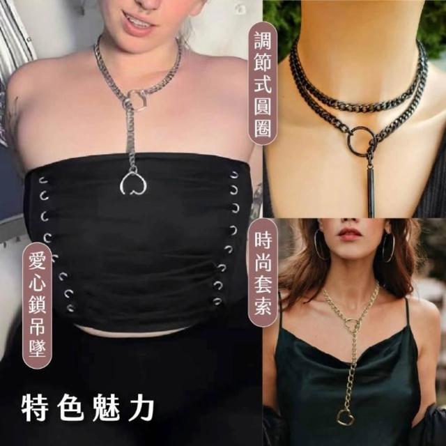 Muses哥特古巴鏈 愛心鎖項鍊 吊墜設計 成人調情 飾品套索 圓圈鏈條 性感愛心 潮流項鍊風格