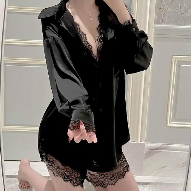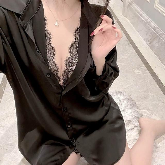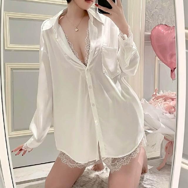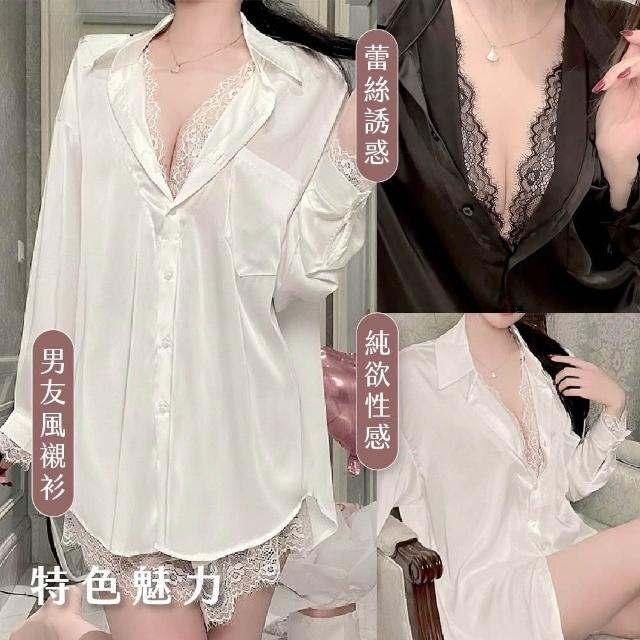 Muses蕾絲男友襯衫 簡約睡衣裙 純欲風穿搭 性感居傢服 誘惑衣服 性感衣服女 鏤空性感服裝 性感連體造型