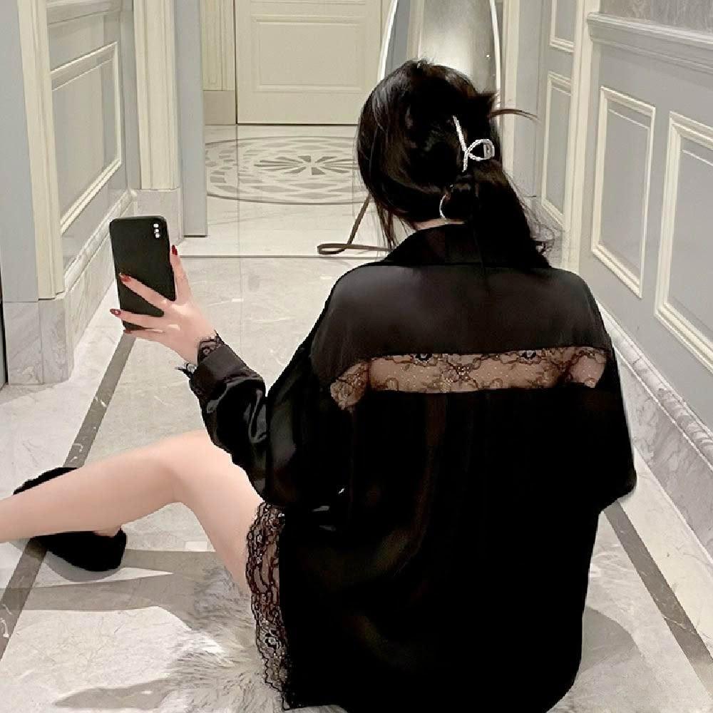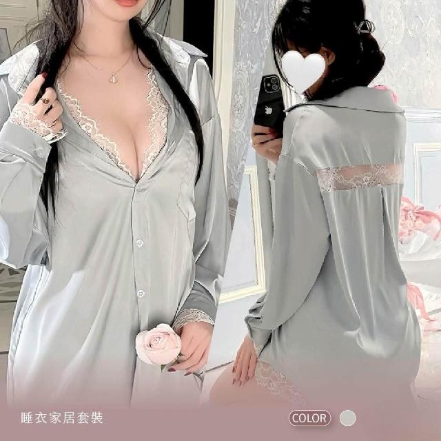 Muses蕾絲男友襯衫 簡約睡衣裙 純欲風穿搭 性感居傢服 誘惑衣服 性感衣服女 鏤空性感服裝 性感連體造型