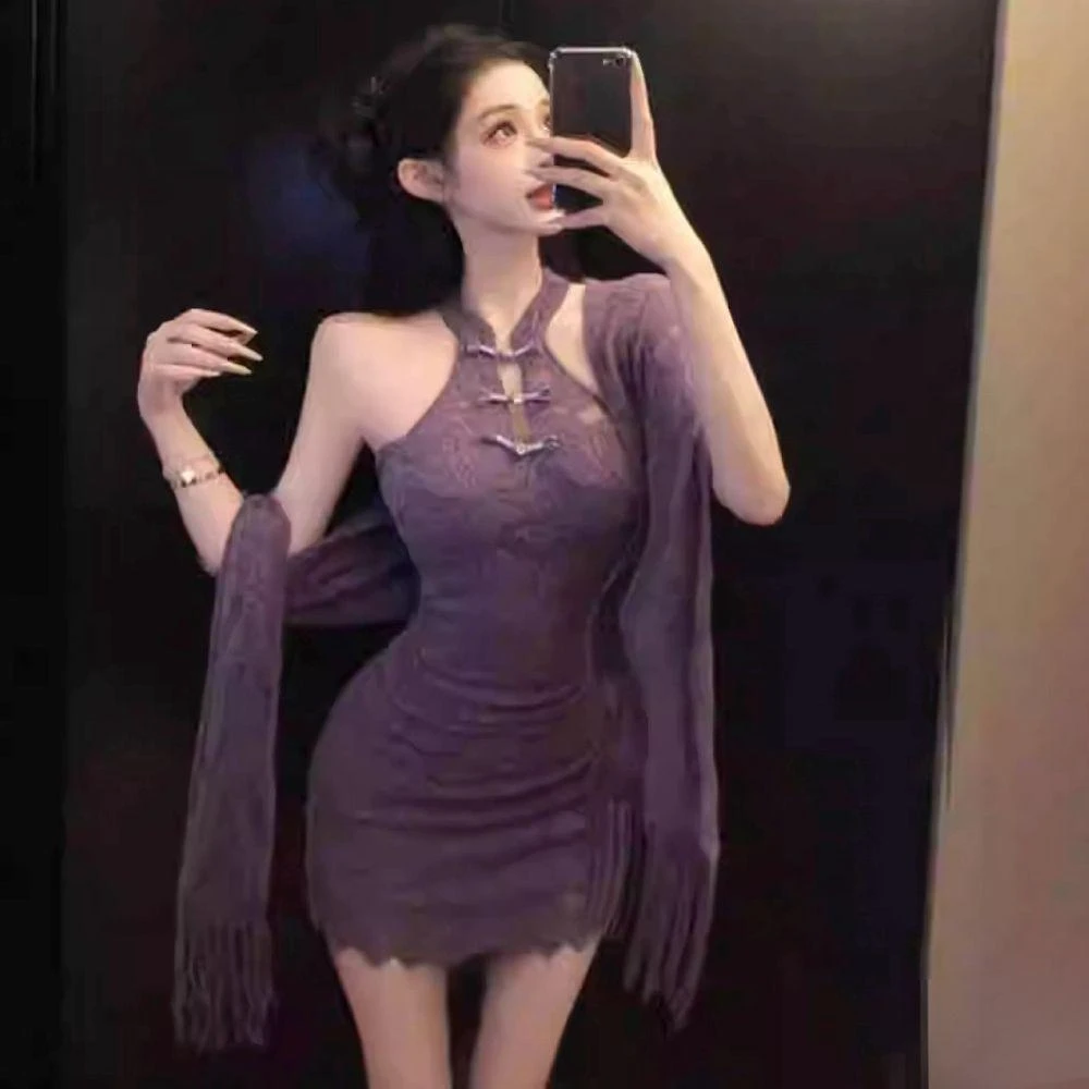 Muses旗袍情趣衣 紫色旗袍 蕾絲花邊 含大尺碼 小胸睡衣 性感旗袍 情趣旗袍 旗袍套裝